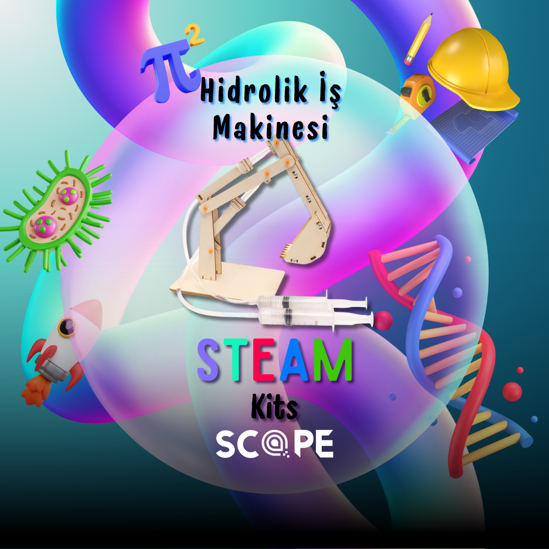 “Hidrolik İş Makinesi” STEM seti, öğrencilerin basınç, kuvvet ve hareket iletimi kavramlarını deneysel olarak öğrenmelerini sağlar.