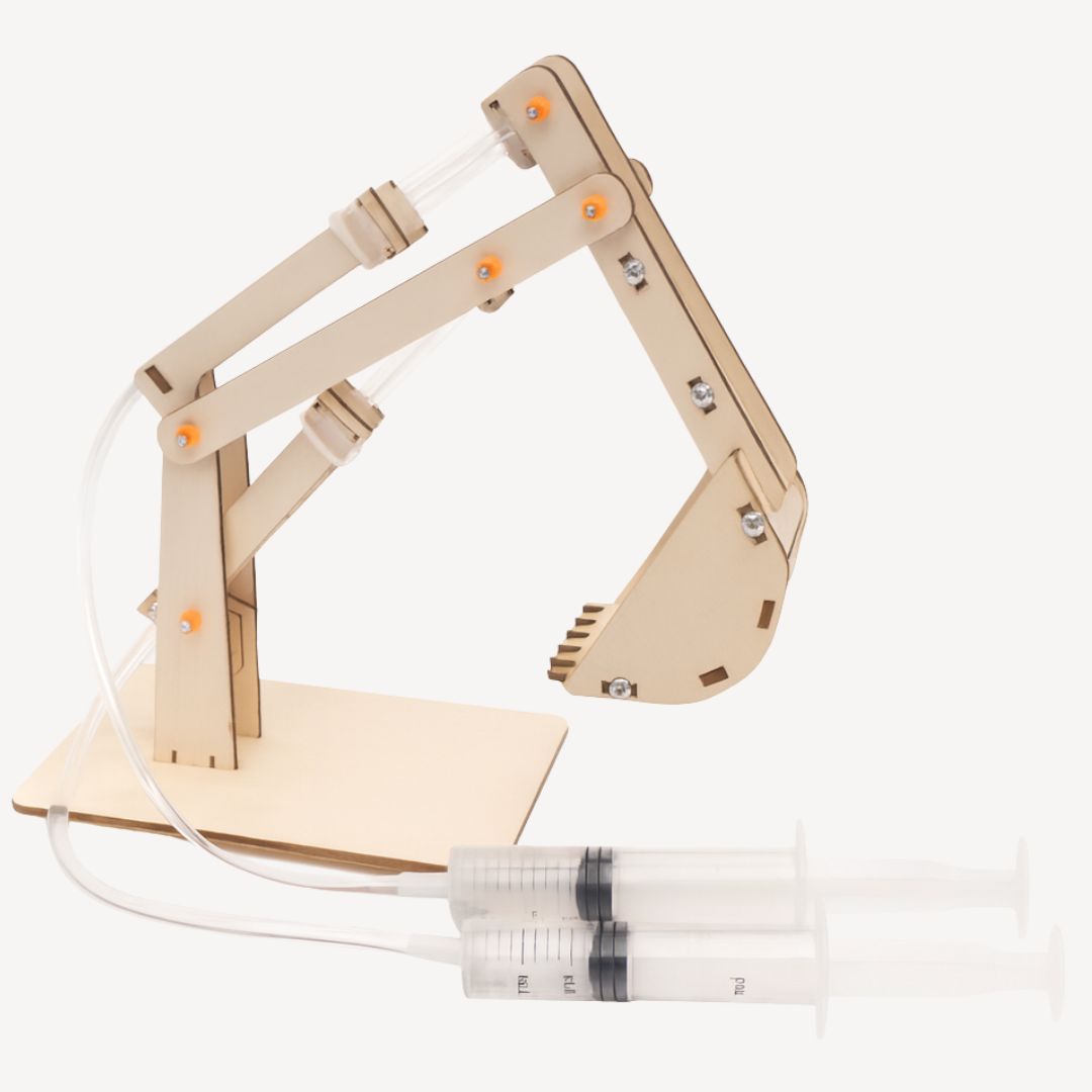 Öğrenciler, şırıngaları kullanarak mekanik kolu hareket ettirir, böylece hidrolik sistemlerin gerçek hayatta (örneğin vinçler, kepçeler, ekskavatörler) nasıl çalıştığını kavrarlar.